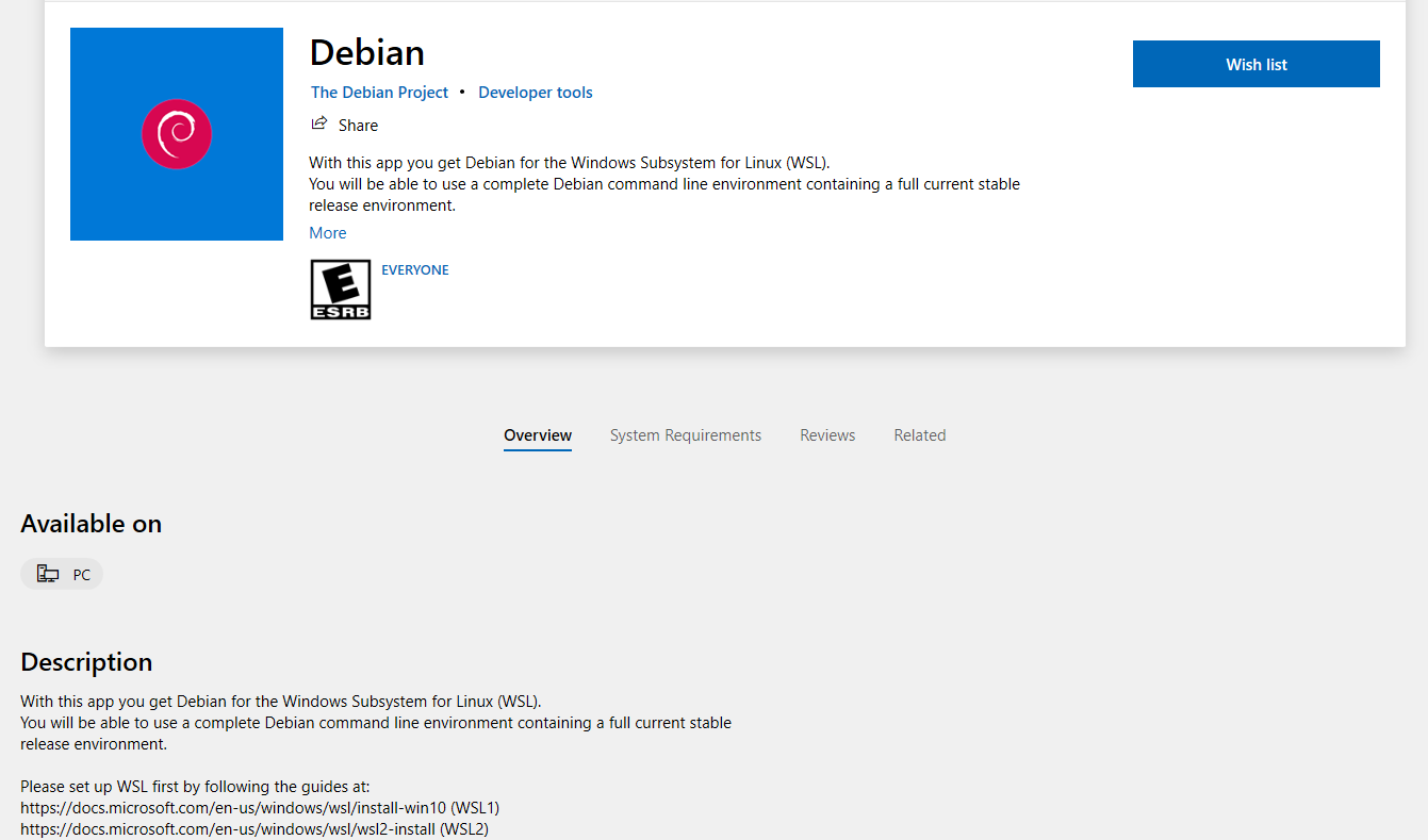 Finally, head over to the Microsoft Store to find your favorite Linux distribution, Debian, and download/install that.